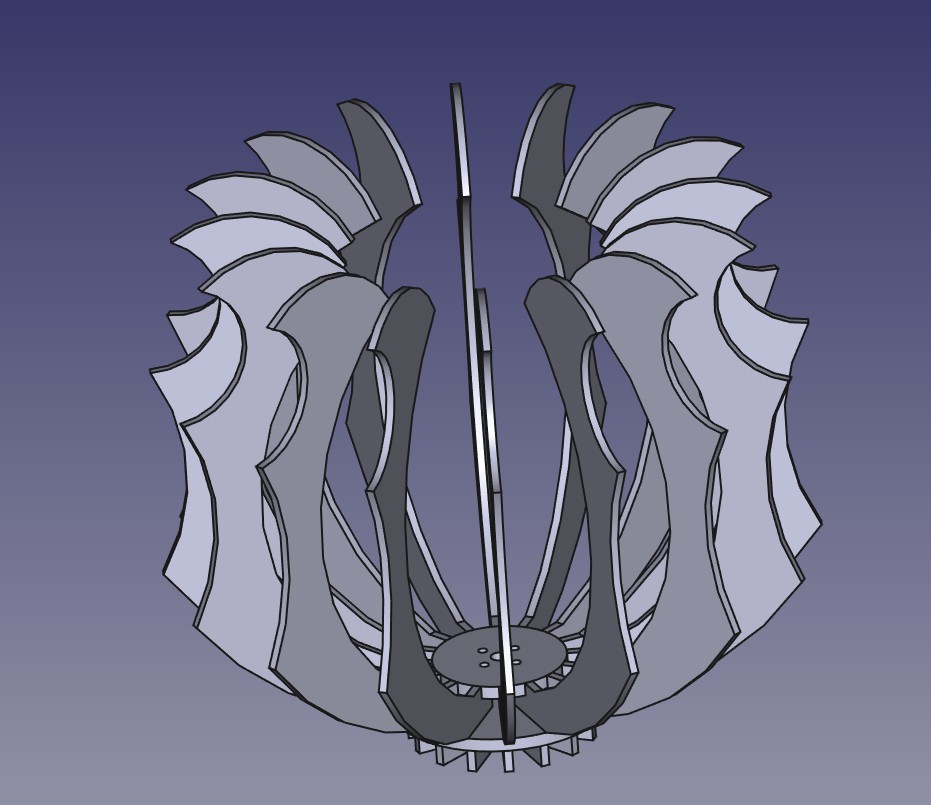 J’ai exporté chaque esquisses de mon projet Freecad en .dxf pour une découpe laser avec la Vevor CO2 à Berry Lab 18. Les 2 disques de la base sont en MDF 6mm et les éléments verticaux en contreplaqué 3.6 mm. Une petite couche de vernis, et le tour est joué…